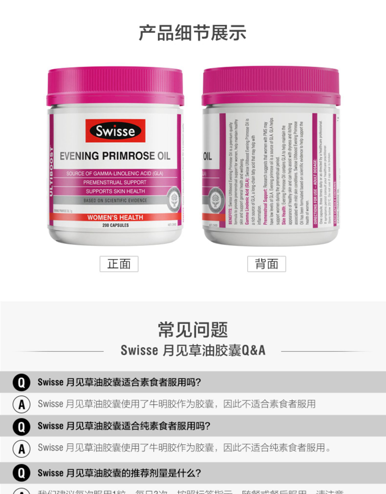 澳洲 swisse月见草胶囊200粒 月见草油胶囊 缓解经期...