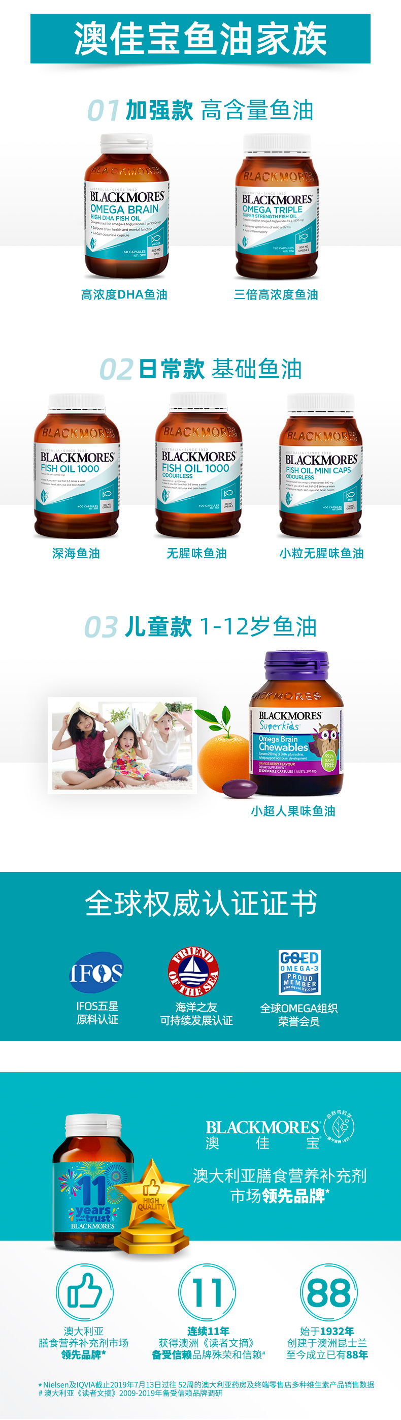 澳洲Blackmores三倍鱼油加强版无腥味高剂量浓缩鱼油软...