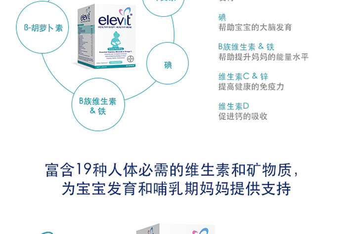 澳洲elevit爱乐维哺乳期复合维生素产后dha叶黄素60粒...