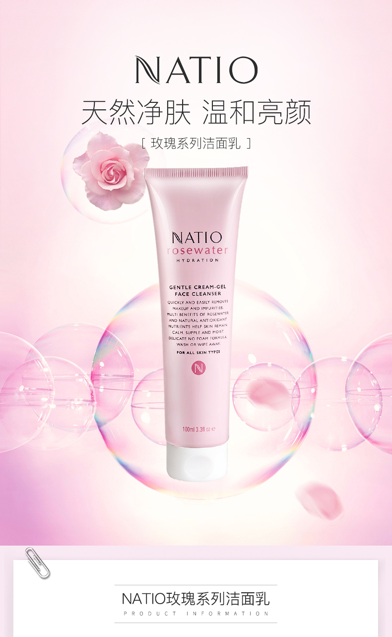 NATIO娜缇欧玫瑰无泡洁面乳 温和深层清洁呼吸控油祛痘孕妇...